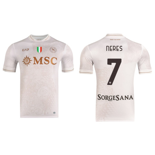 Whether you're adding to your Napoli collection or looking for a standout piece to show your support, this 2025-2026 Napoli #7 David Neres Authentic Cream Away Jersey lets you wear your pride in style.