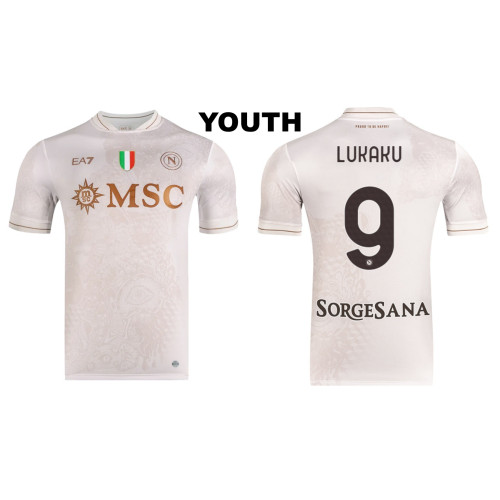 Whether you're adding to your Napoli collection or looking for a standout piece to show your support, this Youth 2025-2026 Napoli #9 Romelu Lukaku Authentic Cream Away Jersey lets you wear your pride in style.